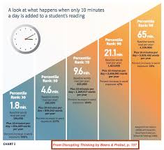 Ironically, last year Mac attended a PD with Kylene Beers and her most recent publication Disruptive Thinking. Gallagher showed a graphic from her book that shows how much just an extra 10 minutes a day can increase students word exposure and performance on tests. We used this graphic all last year, it is posted in our rooms or on our doors and we include it in a contract with parents and students we use in the second semester.
